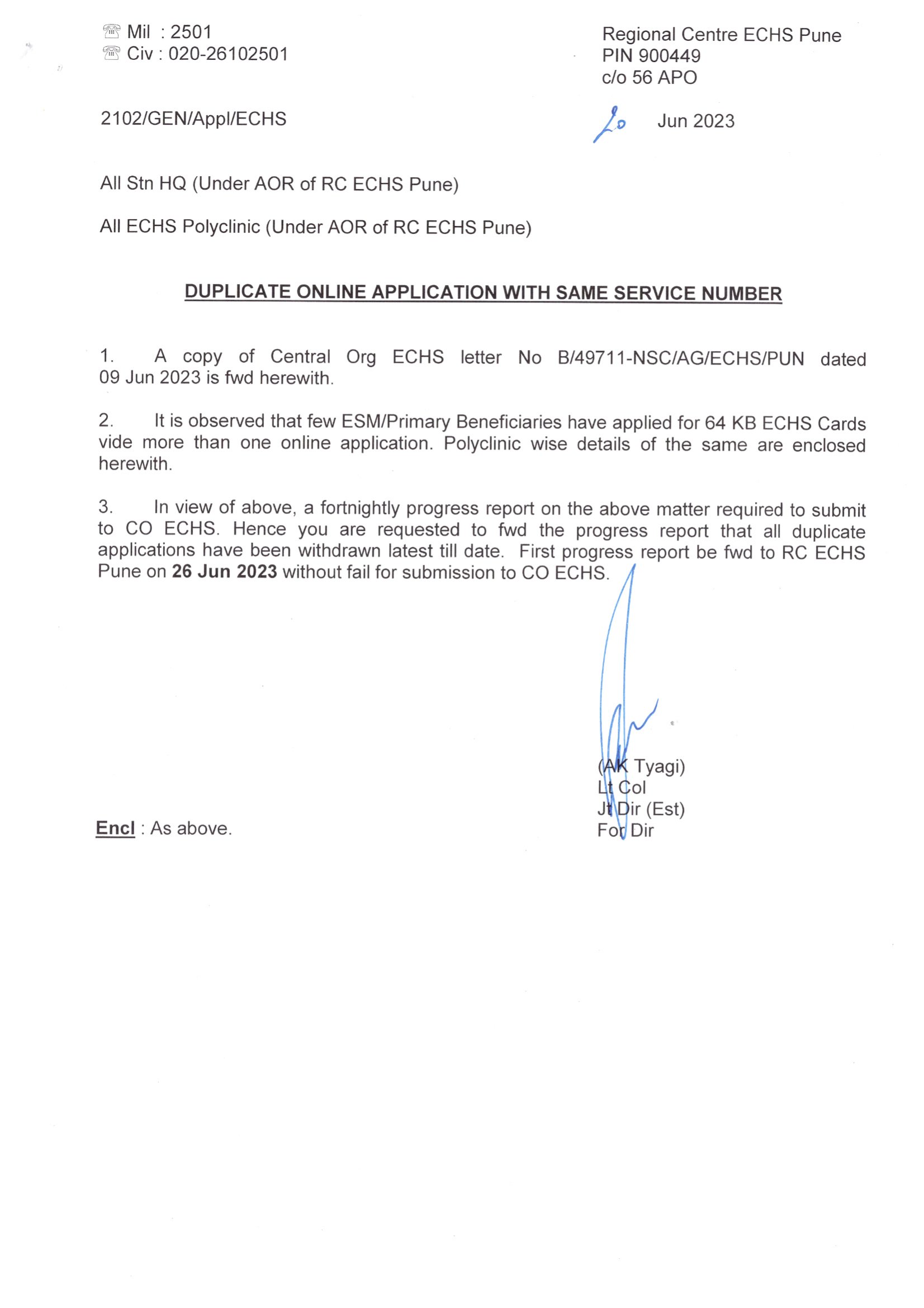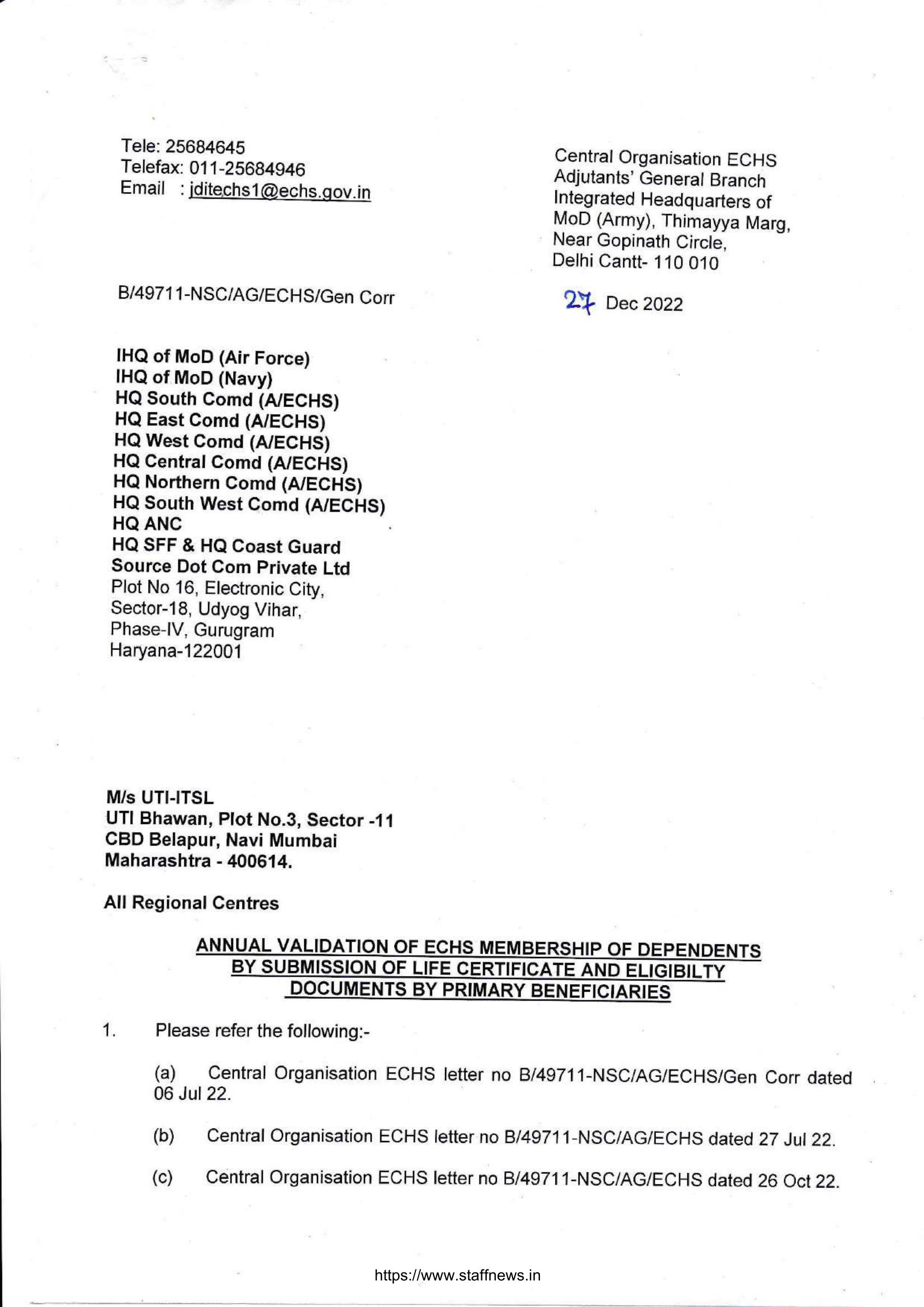 Annual validation of echs membership of dependents DT 15 jul 2023